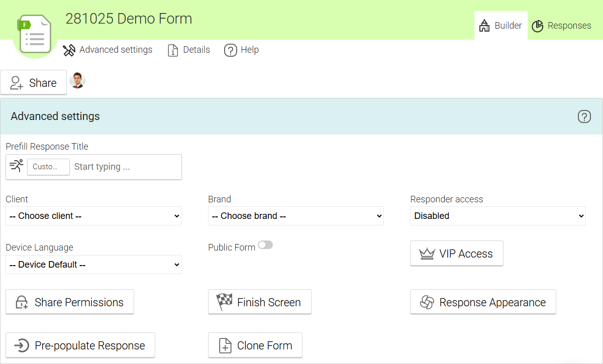 The Clone Form feature is useful when you have created a complex form that you think might be of use to another colleague. This will give them a complete copy of your form free from any of the previous responses to the original form.