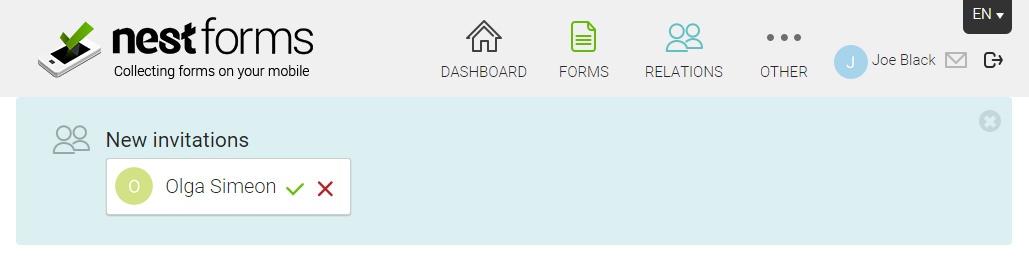 1) This user already has a NestForms account - then they will receive an email and will need to login to the NestForms website and approve your invitation. In the meantime, you can see them in Pending Invitations.