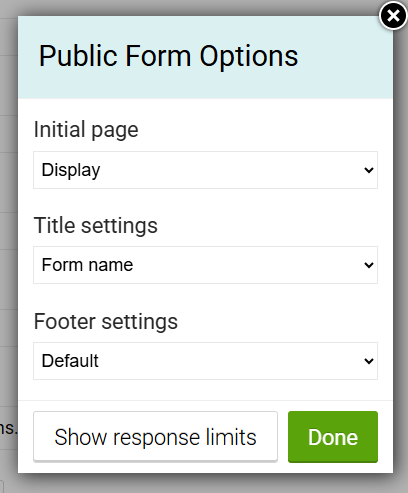 The next 3 dot Menu button provides a lightbox where you have several options to tailor your Public Forms further: